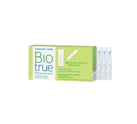 Die Biotrue EDO Augentropfen enthalten Hyaluronsäure, einen natürlichen Feuchtigkeisspender der im Tränenfilm vorkommt. Dieser Feuchtigkeitsspender sogrt für eine wohltuende und lang anhaltende Benetzung.